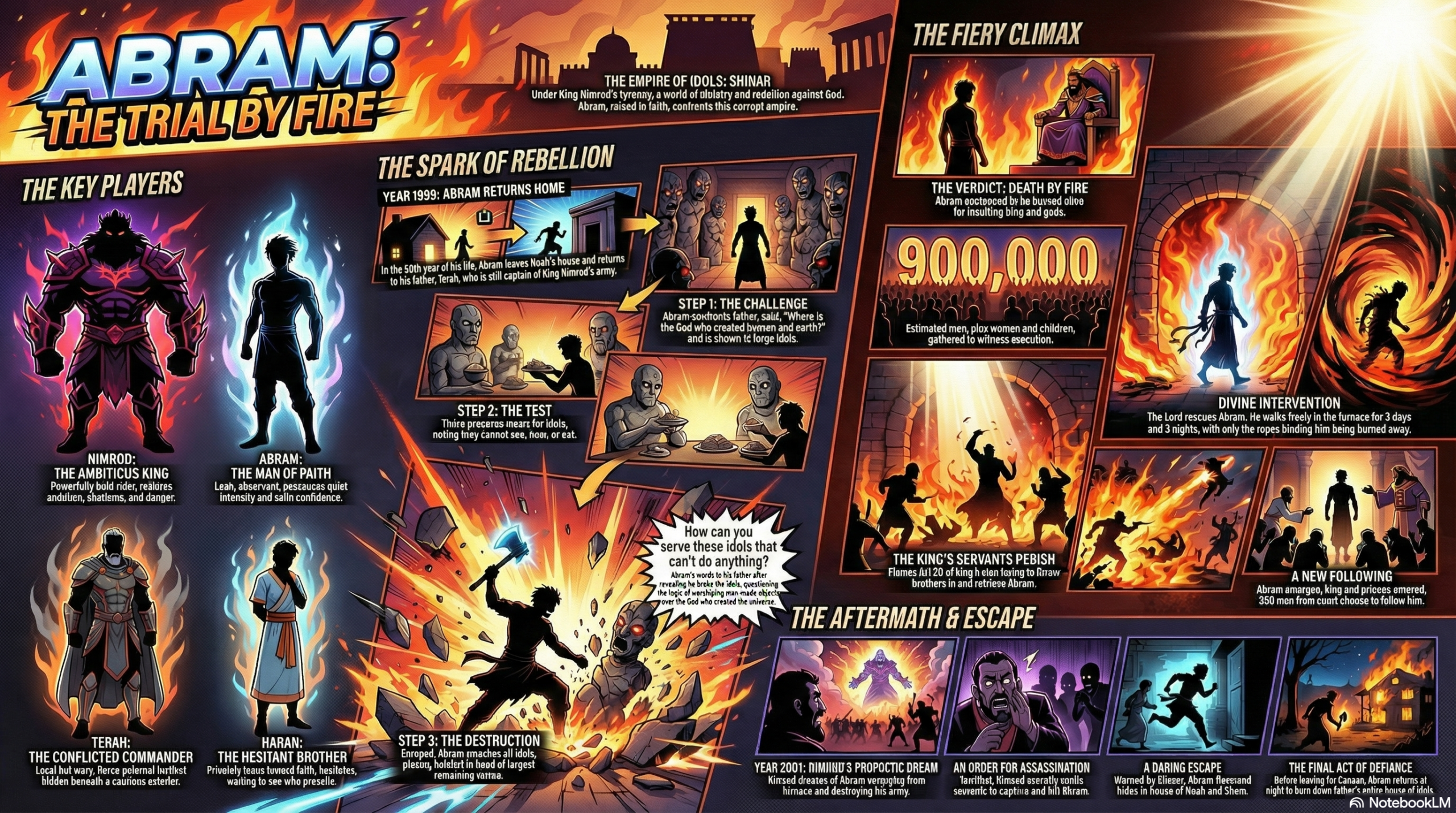 Through trials of fire and dreams laden with prophecy, Abram emerges not just as a survivor, but as a catalyst for divine intervention and human redemption. His path is fraught with danger and divine guidance, forging a legacy that transcends mortal kings and earthly fears.